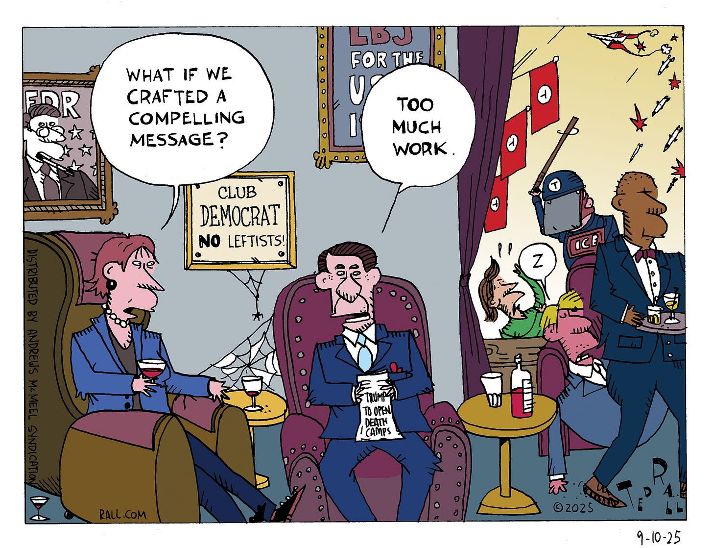 As President Trump runs roughshod over norms and laws, extrajudicially murdering 11 alleged drug runners without evidence, deporting legal residents, and dispatching troops to peaceful American cities, all eyes turn to the Democrats who might oppose him. But they seem content to sit by idly and watch the mayhem.